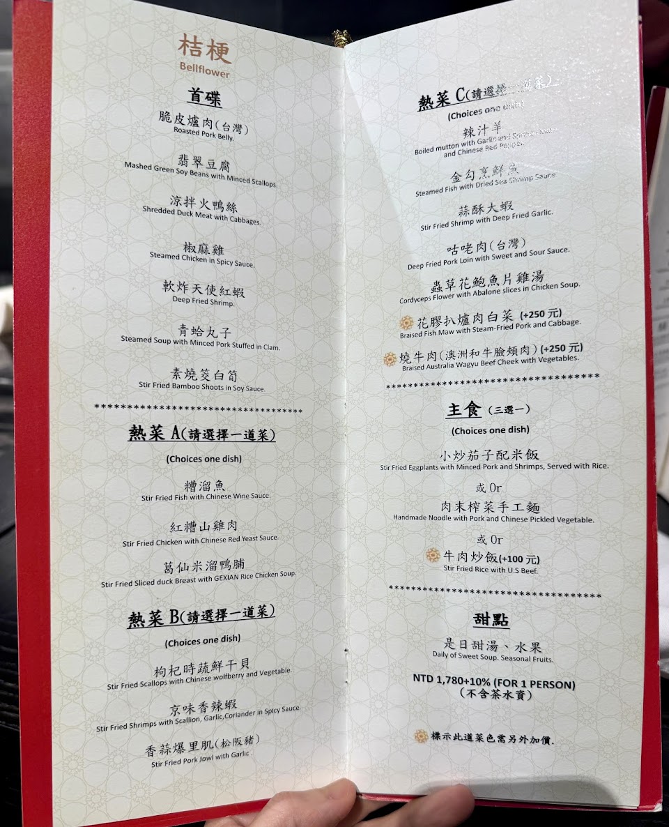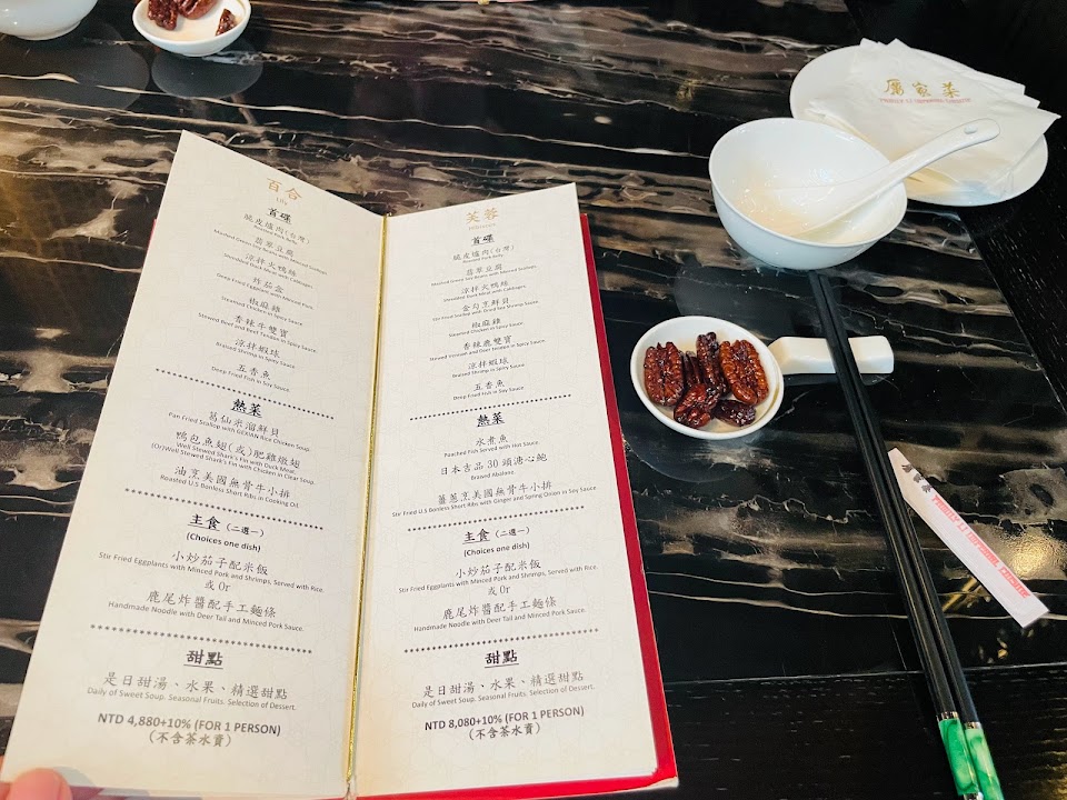 環境一流,服務優質,菜品精緻。厲家菜於約20年前在北京長安街雙子星大廈後方起家,主打精緻的北京菜餚,走中高價位路線,頗為成功,疫情前夕來到貴婦百貨開分店,走高檔風,入口在貴婦三樓,但實際用餐是在四樓,以木質為主的中式庭園風,配上信義區的窗景,堂食區頗為寬敞,餐點以套餐為主,午餐甚至有1080的商業午餐套,初次嘗試的午餐是1680的桔梗套餐,3+4的七道開胃小菜包括主打的脆皮燒肉(粵式)、翡翠豆腐泥、火鴨絲蘆筍、紅燒肉、小蔥豆腐等,其中,迷你版的肉末燒餅,細緻有餘,但味道稍嫌平淡,略為可惜。自選的三道熱菜,抓炒豬里脊,食材與火候俱佳,略帶焦香的外表薄薄的裹了一層酸甜醬汁,非常可口,紅糟山雞肉的雞肉也非常嫩滑,紅糟醬汁有福州風,鹹中帶甜,紅燒牛臉頰肉(加250元)燉煮得十分軟爛,也挺入味,若醬汁味道再略降一點或許更好,主食挑的麵條是寬厚手擀麵,斤道十足,頗得我心,甜點上的是紅棗銀耳甜湯,也算精緻。總體來說,氣氛頗優,口味不錯,是個宴客的好地點。