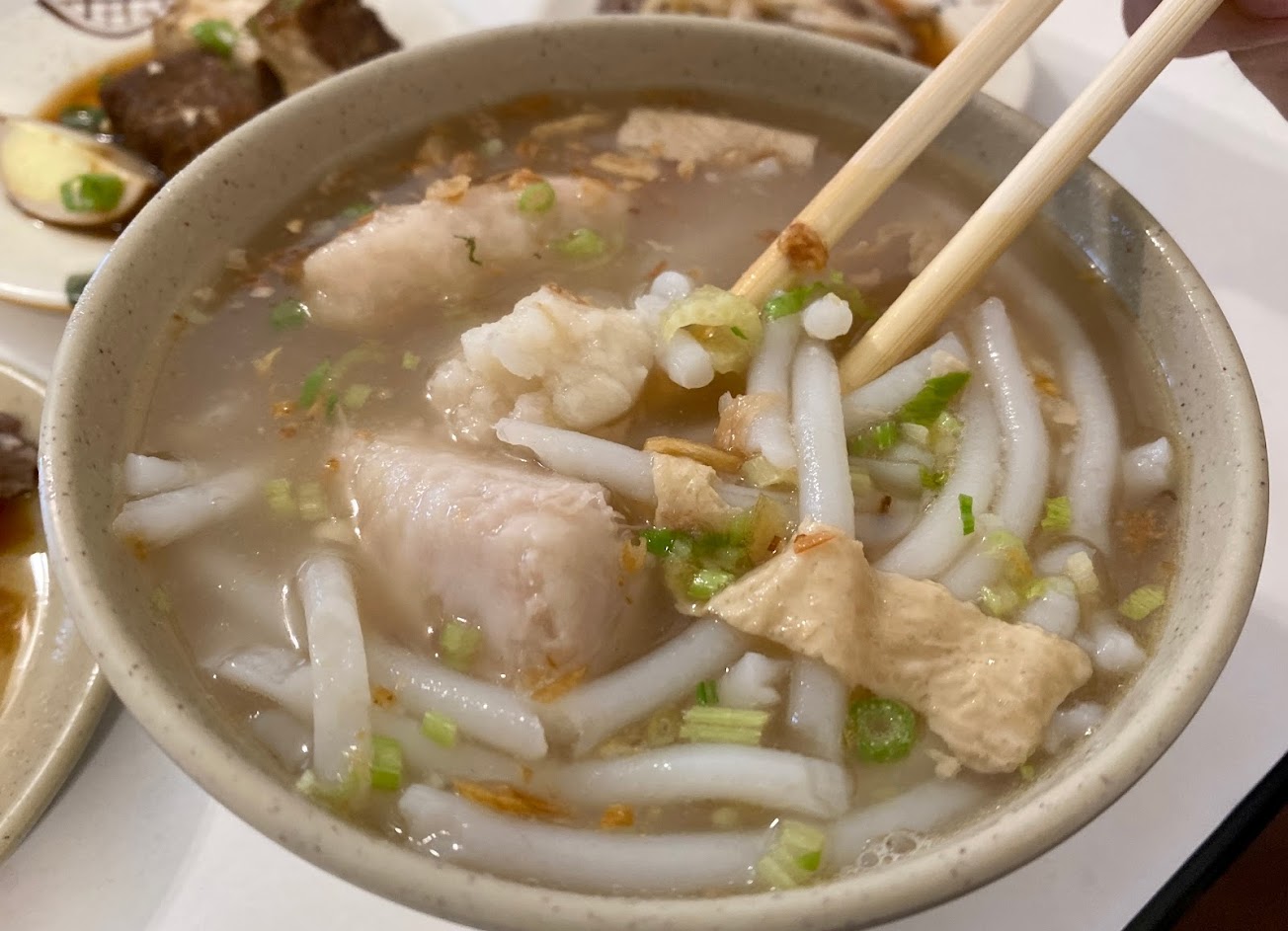 湯頭已經熬成芋頭色,每一口都感受到芋頭和豬骨的香氣還有粉感的芋頭。加上芹菜和炸蒜做提味,粗米粉吸飽湯汁卻又保持微脆的口感。明明是油脂和澱粉結合的湯汁,卻吃完一碗後都沒有油膩感,店家真的拿捏得非常好。