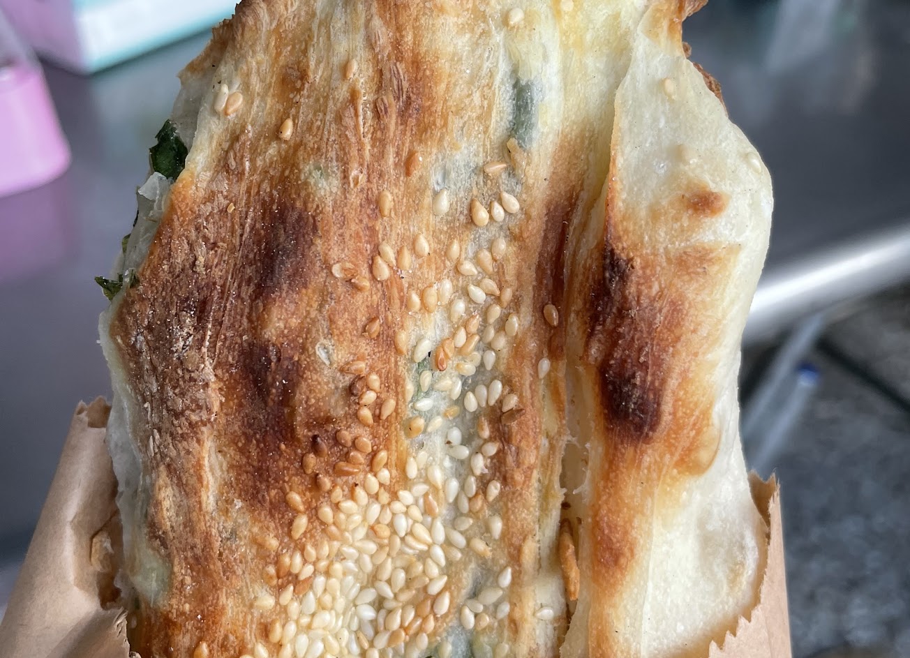 燒餅,第一口咬下一樣沒有蔥的香。取而代之的是一股說不上來的味道。我想了想,應該是鹼的味道。
