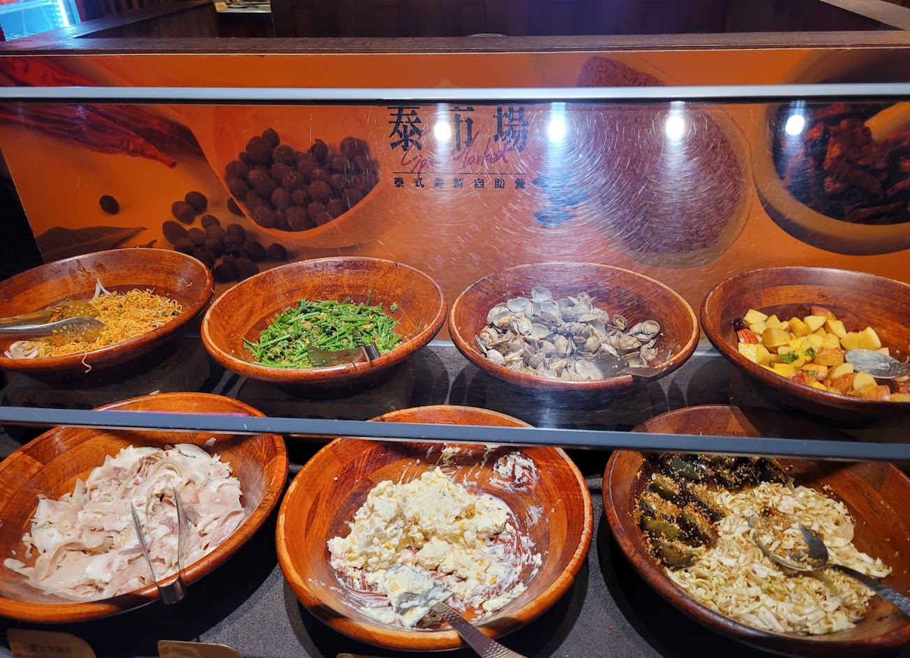 久聞泰市場的美味,終於有機會來嚐鮮,主要沖著甜蝦跟天使紅蝦來的,泰式料理方面應該是有調整符合台人口味,但能一次吃到這麼多泰式料理的吃到飽餐廳也不多。大薄片真的一絕,厚薄剛剛好,搭配醬汁很讚,蝦餅連老婆都說很好吃,甜點以螞蟻人的我來說是可惜了點,品項少也沒有驚艷,算是中規中矩,冰淇淋哈根達斯也是正常有的,甜湯部份可以吃到波羅蜜跟紅毛丹,嚴格來說算是久久可以吃一次的選擇。