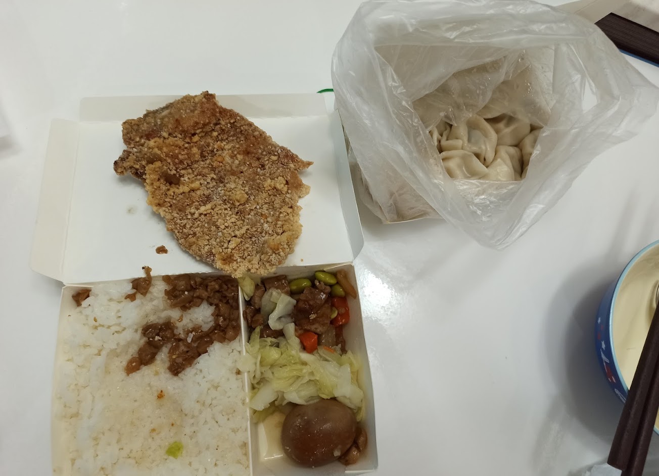 水餃應該是店內最好,而便當的雞腿還可以,就是配菜普通,點餐櫃檯雖然會記錄,但即便離峰時段,給餐都會滿混亂的,小菜偏貴但味道算入味,須自己夾,負責切小菜的男生確實很沒熱情,若可以接受這種混亂的給餐,餐點的CP就算是還行