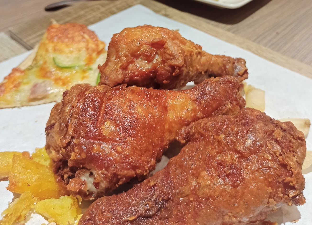披薩好好吃(⁎⁍̴̛ᴗ⁍̴̛⁎) 炸雞腿跟雞塊也很好吃!
