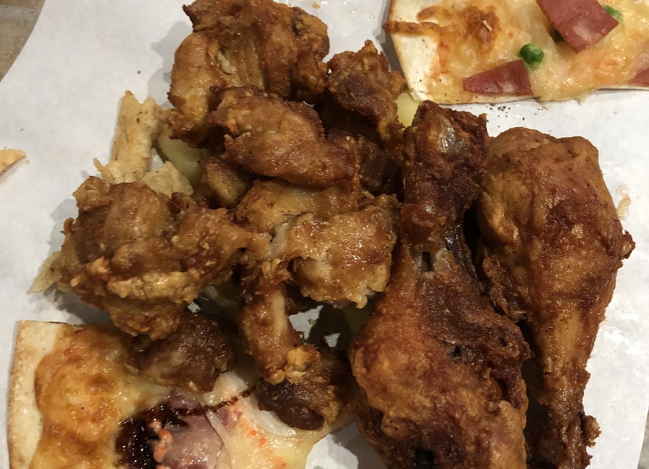 然後是這次的炸雞,有吃到多汁的,也有吃到乾癟的,品質不一,還有炸雞有事先烤過口感不是很好