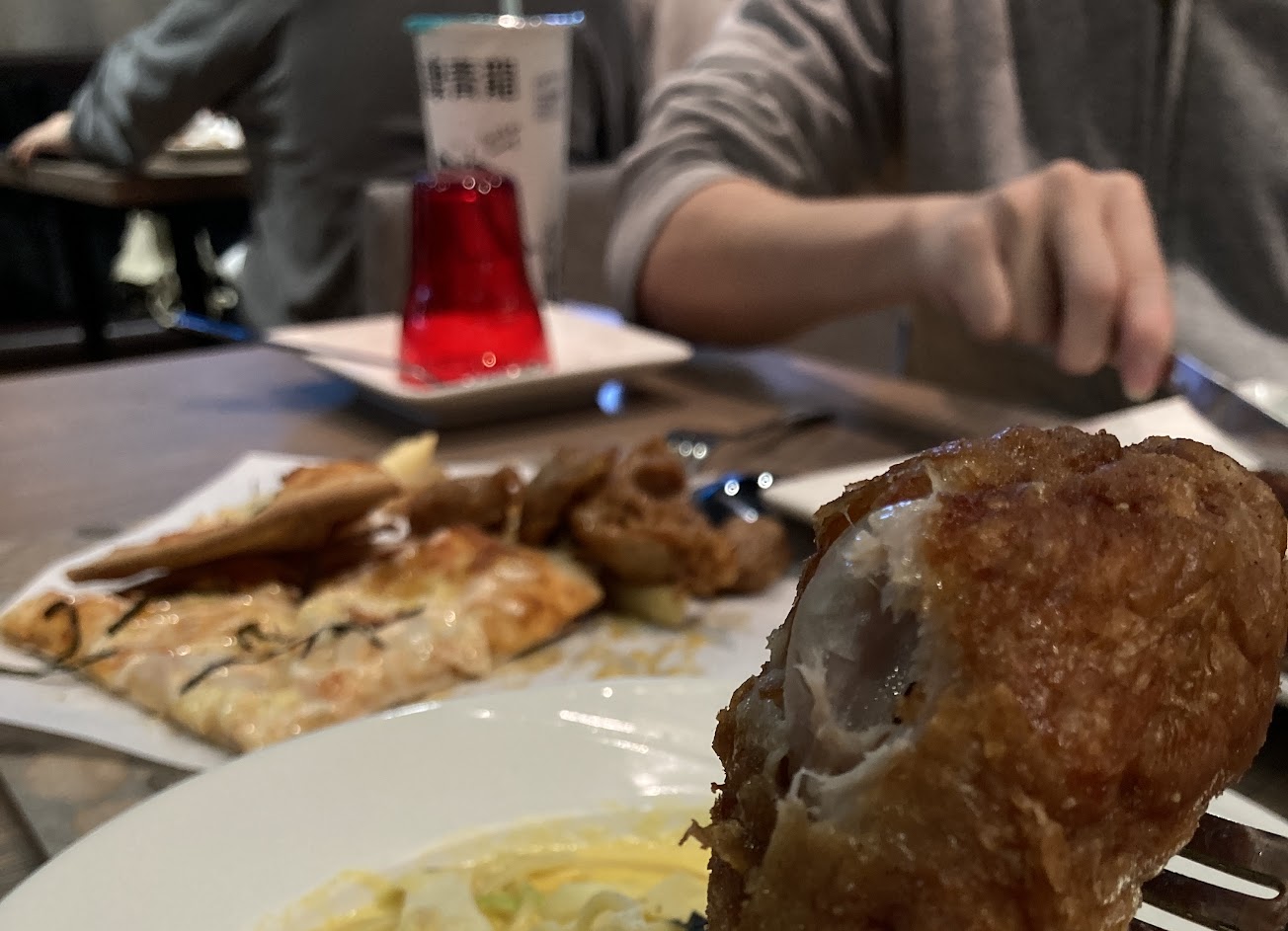 炸雞腿和雞塊的新鮮度欠佳,店家用很重的調味把腥味過去,感覺肉質不新鮮。披薩吃起來普普通通,沒有特別好吃,非常一般。