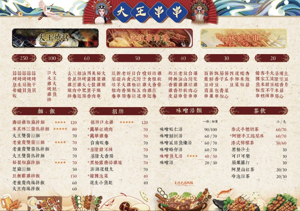 2024最新在地推薦餐廳的菜單_大王串串 燒烤大王串燒的菜單、圖片