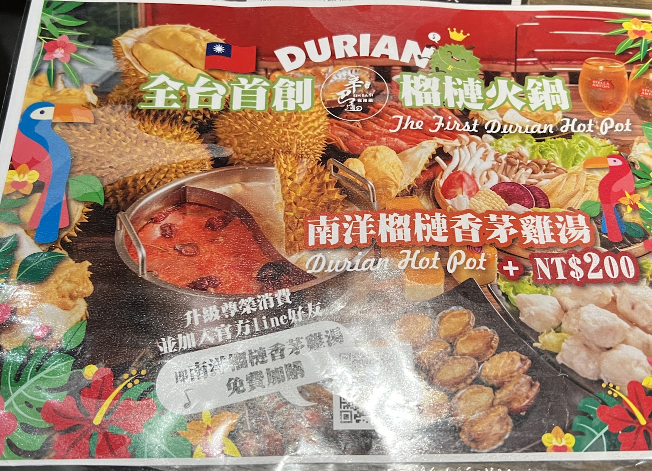 一進來餐廳櫃檯這,櫃檯沒人!旁邊走動的服務生也都沒有來招呼…..等到點餐時說要點全台唯一的榴蓮火鍋,服務生確說賣完了⋯⋯,天呀,來這裡就是專程吃榴蓮火鍋的不是嗎!後來想想既然都來了,就坐下吃吧,沒有榴蓮火鍋那就自己製作榴蓮火鍋,將一堆榴蓮放進湯裡!要用醬料時確發現沒雞蛋,跟服務生反應回覆說會補,結果後來又說雞蛋沒了…..還好今天不是大陸小粉紅來吃,不然又會被酸說台灣人連雞蛋都吃不起!雖然後來結完帳後,我坐在旁邊休息的座位休息一下時,店長有來詢問我店裡是否有什麼令我不滿,需要改進的地方,也都一五一十的跟他說了!