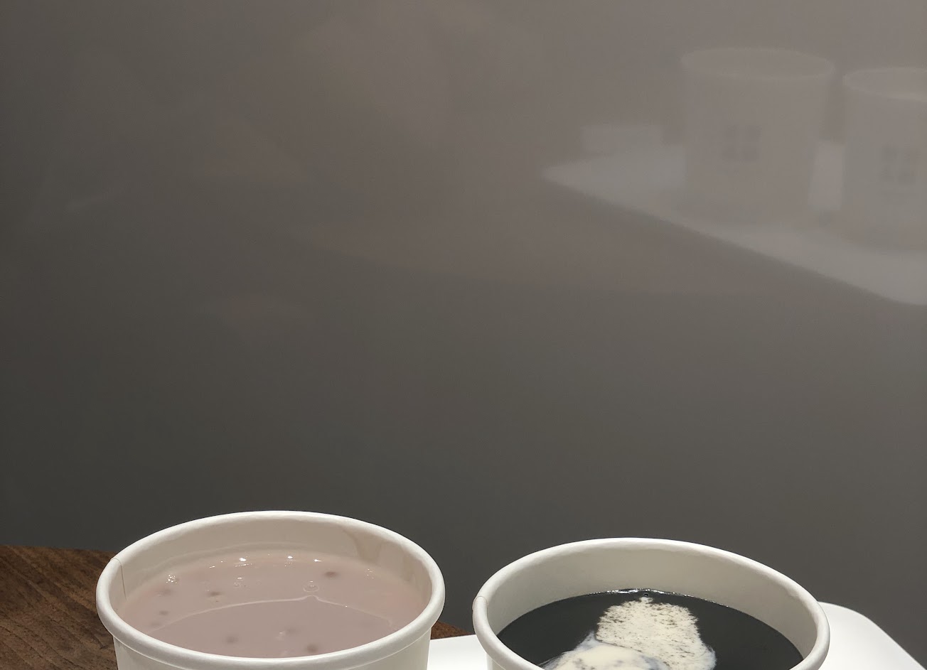 位置有點少,不管不會排太久 菜單上有寫雙的都可以2種混搭成一碗 價格一樣是$95 芝麻混杏仁超級濃稠 芝麻弄到把杏仁味蓋過去 吃起來像豆漿混米漿的感覺 以為他會跟本店一樣幫你畫一個太極形狀結果沒有?