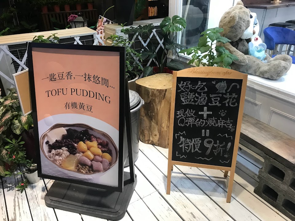 吃完飯來吃豆花,點了四號五號豆花,吃了很驚訝,手工芋圓還有黑糖等…都好Q彈,比寧夏夜市的豆花好吃多了。