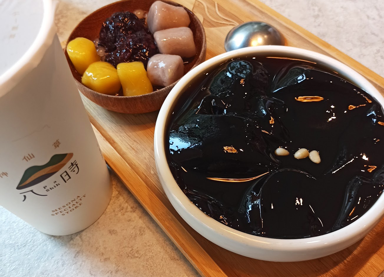 「八時神仙草」的品牌是從台中開始的,松菸店在松山文創園區外圍,松山高中籃球場斜對角外,很推薦喜歡仙草的人一定要吃!