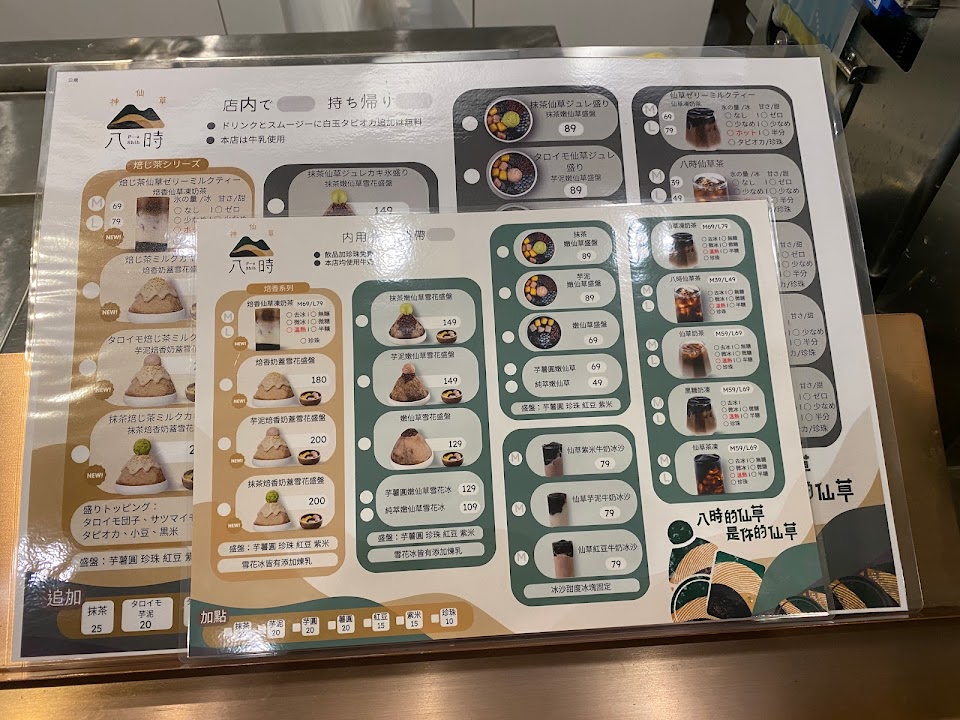 在松菸附近走路大概走個五分鐘就會找到這家八時神仙草,裡面的座位數不多,但平日晚上去吃,還有位子!門口有一台自動點餐機滿好玩的!而且他的仙草冰很好吃!超適合夏天消暑的!原本走到店門口汗流浹背,但是一吃到仙草冰整個暑氣全消,仙草冰裡面可以吃到一絲一絲的仙草,感覺真材實料,吃得很開心,而且煉乳加得很夠!店員人也很親切,會介紹親切介紹每一道產品。另外仙草茶也很好喝不會甜,總之就是一家很適合夏天吃吃吃吃吃的冰店!如果有經過或是在信義區附近晃的時候,絕對會再去吃這家的仙草冰!