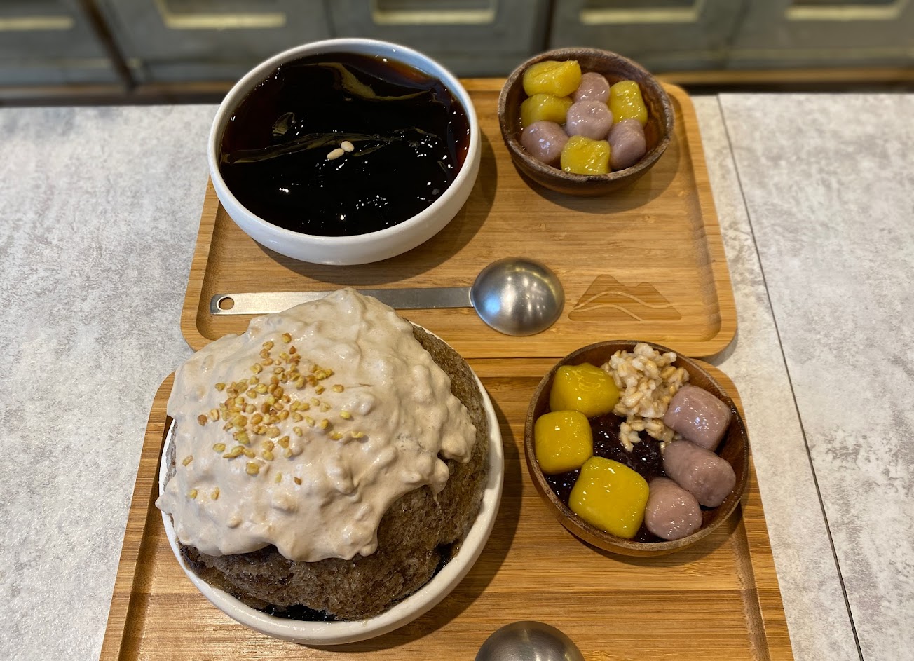 自從在澎湖二崁聚落吃到用冷凍仙草製成的雪花冰之後,好滋味一直念念不忘… 終於在台灣被我找到了~價格是高了些,但在這區、這食材的好品質都估算進去後,覺得也很合理。門口有點餐機,付費後進去裡面等一會兒就製作好了。我選擇不加煉乳,雖然少了煉乳的甜來讓冰品提味,但更能品嚐到例如芋頭、紅豆、仙草本身的味道喔!芋圓、白珍珠、紫米… 都不會調味太甜,這道冰品是很棒的體驗!