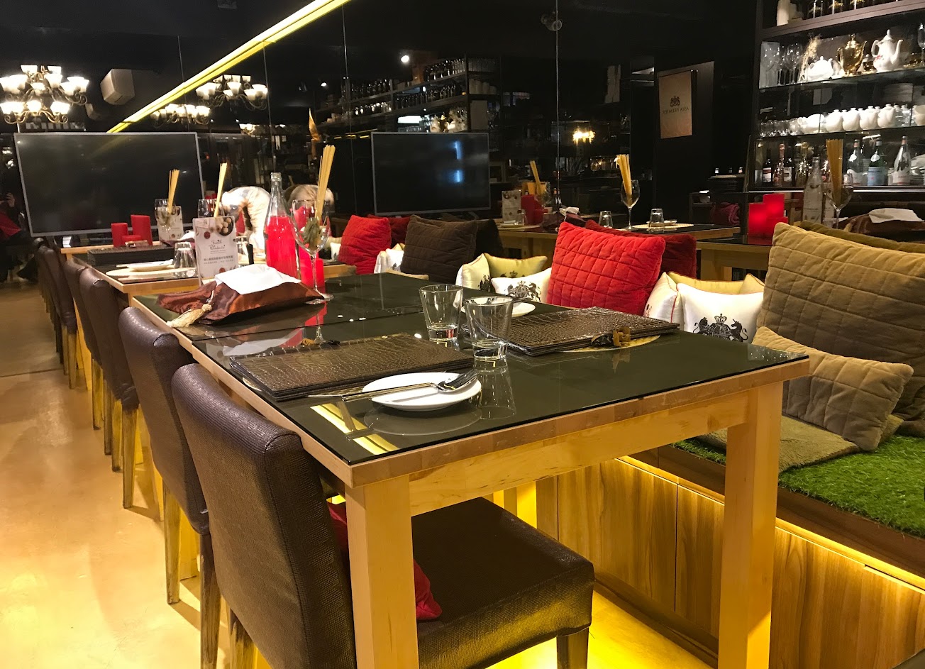 整體環境很有英式貴族的風格,桌上擺有刀叉、玻璃、酒杯還有看一罐看起來像茶葉罐的糖,番茄濃湯的味道還行,湯底是以番茄為主,之後在淋上起司濃湯,起司還算濃郁,服務生態度很好,義麵沒有醬汁超乾的,個人不習慣沒有醬汁,小香腸還可以有煙燻的味道,墨西格薄餅味道還行,有點餡料皮也薄薄軟軟,最後送上的提拉米蘇冰淇淋很大一杯還算綿密,飲料有可以選擇的茶葉或冷飲,飲料調製的不錯,點了一杯蔓越莓,餐點價錢很高,,cp算是值普通,個人覺得來這裡喝酒還不錯,不知道為什麼評價刷那麼高咧~