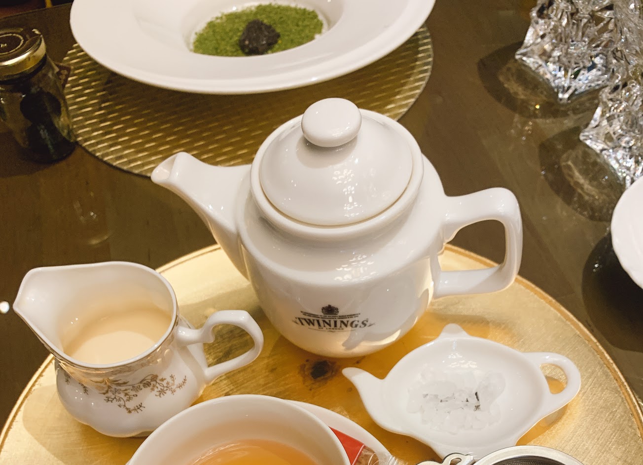 在這裏可以品嘗到英國各種茶類,冰的榛果奶茶中玫瑰造型的冰塊彷彿讓人坐在花園中。翻轉蘋果塔因為疫情的關係可以不用預約就可以吃到,裡面的酒香味熱熱吃下去很特別的熱甜塔,雖然價格比較高,但服務人員非常的細膩周到。