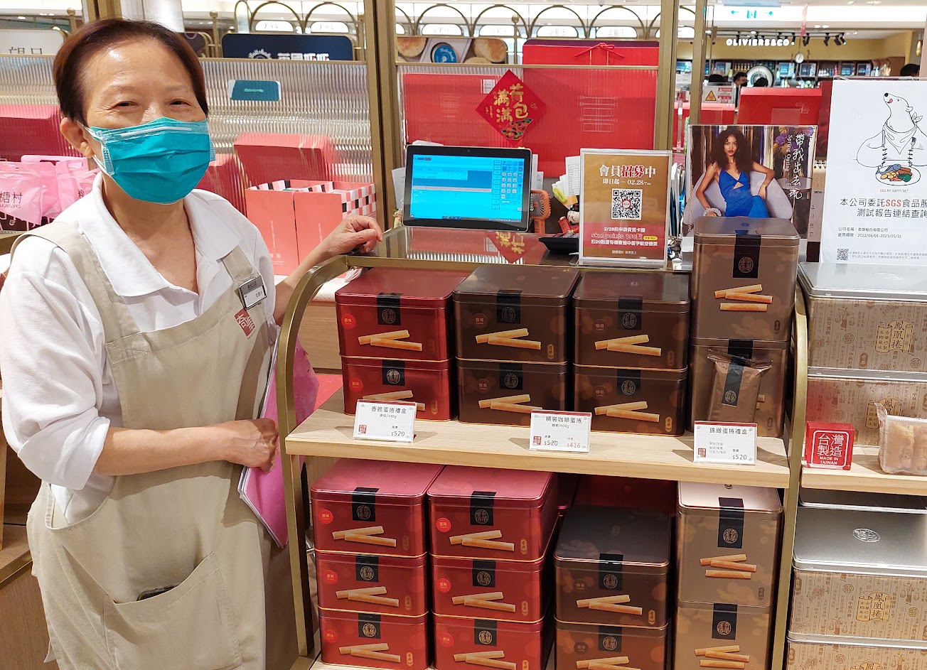 奇華餅家在信義區新光三越B2的店裡,經常可見到親切有禮、服務周到的金小姐照顧攤位,令人買了安心,是位相當優秀的銷售人員。