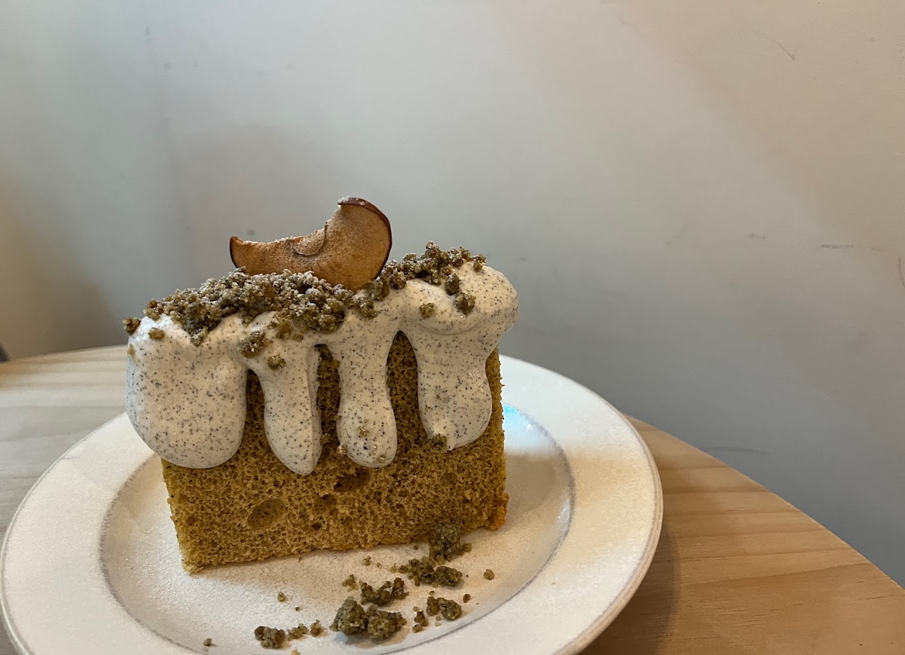 – 拿鐵 120 – 鐵觀音戚風 150 ⏳平日沒客滿不限時 一間溫馨可愛的小店。對當天的咖啡跟蛋糕都很滿意??蛋糕上的奶油淋醬完全不膩口,跟戚風融合得很剛好。上面還有乾燥蘋果片跟茶味的crumbles(? ,口感不會無聊。下次還想嘗試其他款甜點? ?Oct 7(因為疫情關係,內用組數很少)