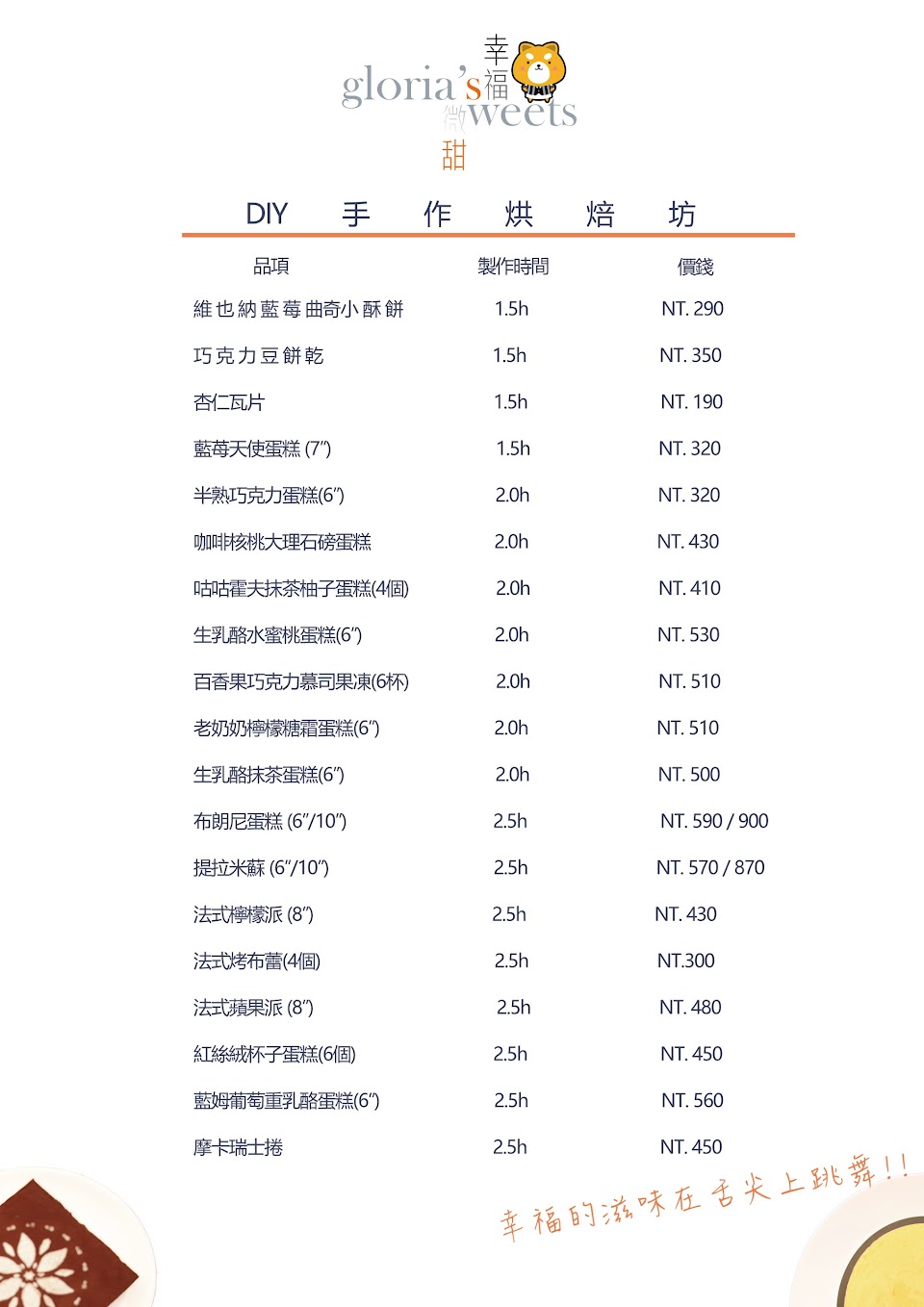 2024最新在地推薦餐廳的菜單_幸福微甜手做diy烘焙屋的菜單、圖片