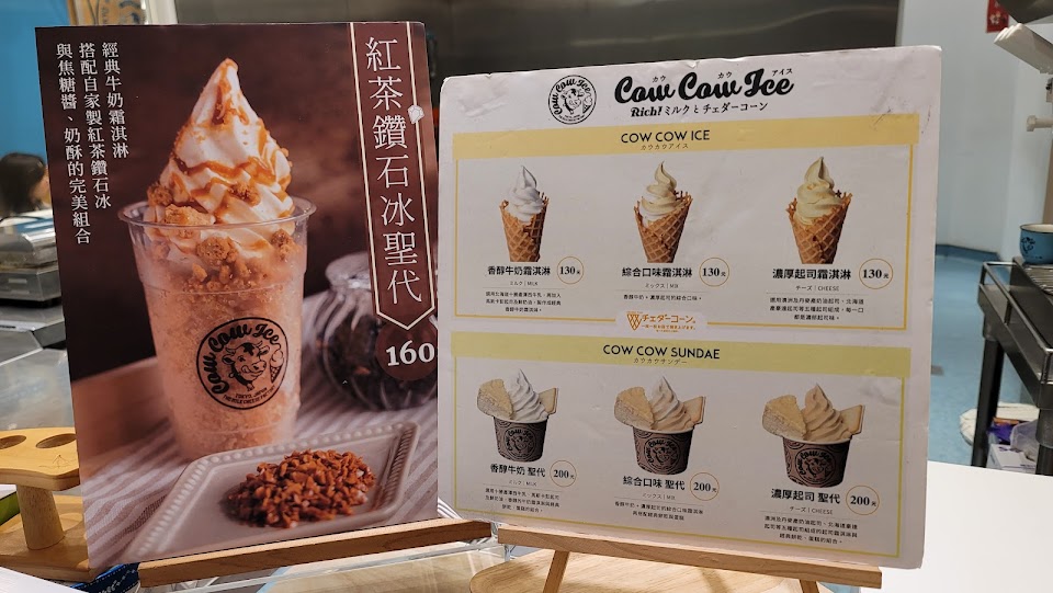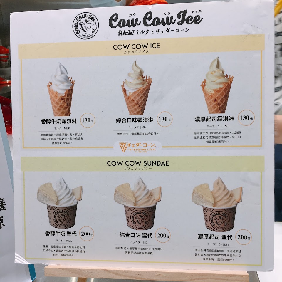 店內霜淇淋有香醇牛奶與濃厚起司口味,這次點了綜合口味的「Cow Cow Sundae」?牛奶的部分中規中矩、是好吃的牛奶,起司的部分較令人驚艷,味道香濃不膩口、吃起來非常過癮?️上面搭配的起司蛋糕有兩層口味,吃起來有點像冰淇淋蛋糕,另外還會放上一片招牌的夾心餅乾,好吃到想直接買一盒回家?
