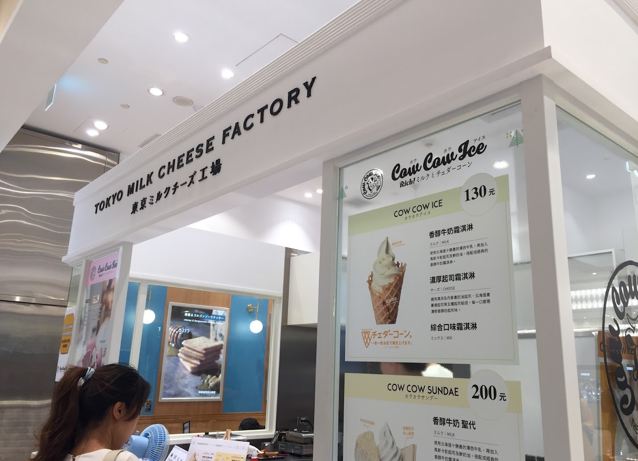 有兩邊在排隊的人潮,一側是排 #東京牛奶起士工坊 的「人氣餅乾」,另一側是排「霜淇淋」跟「聖代」兩種冰品。