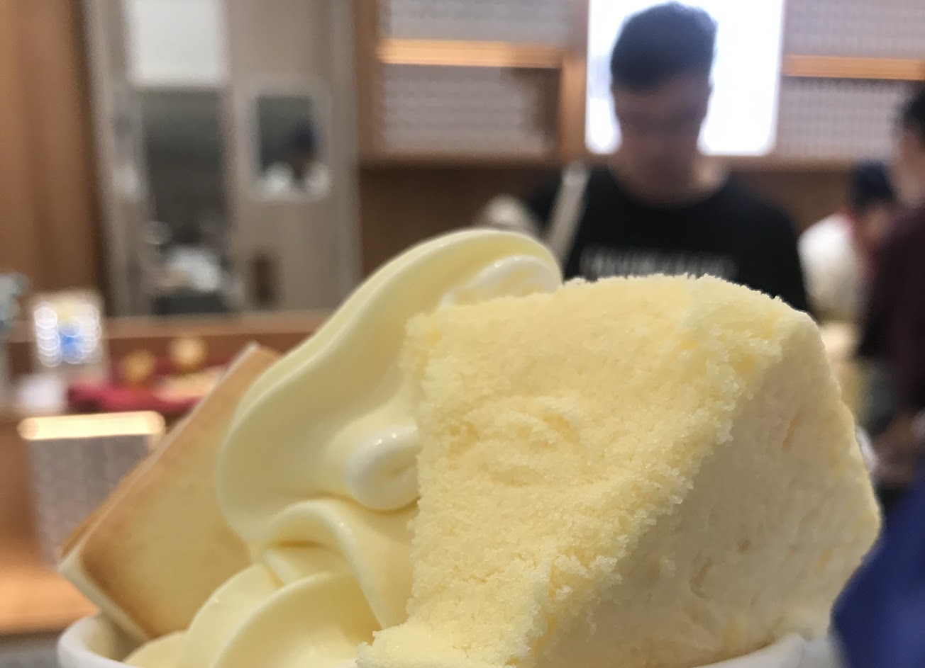 我們不約而同的選擇了「霜淇淋」,他們家的餅乾脆皮,是一片片手工現烤,排隊時空氣中瀰漫著起士牛奶的香氣,真的讓人流口水?。