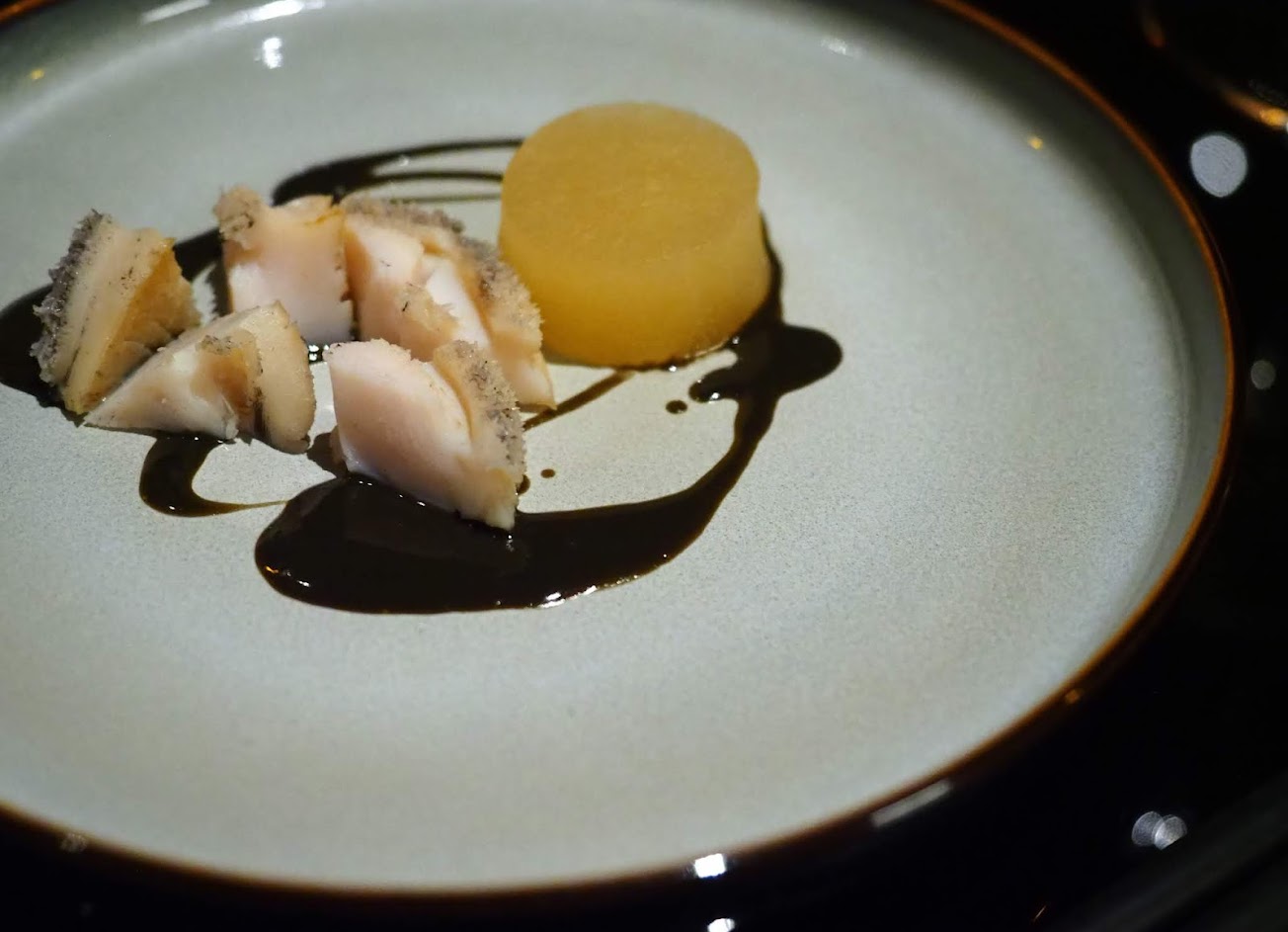 晚餐共十道餐點,部分料理結合本土元素與創意,如薑母鴨元素的鴨湯佐腐乳泡沫配上令人驚喜的老薑珍珠,牛奶貝結合魚子醬搭上豉椒元素,和牛塔塔像是韃靼牛肉的作法,但賦予相較原菜色口味更協調的風味,前三道都能讓人感受到新鮮感與分子料理手法上的衝擊,但小卷與蠔汁豆腐則表現普通,而主廚有名的神秘小白球讓人期待最高,表現卻最為失望,主打胡椒餅元素,但完全表達不出胡椒餅的精髓與影子,主菜的北海道干貝、法國鴨肝、和牛牛排三道本身食材就非常頂級,加上精準的烹調,視覺與味覺讓人感受到加乘的雙重享受,低溫烹調的藥膳珍珠雞則讓人覺得莫名失望,藥膳口味過於突兀,口感則完全體會不出低溫烹調的特色,最後甜點玫瑰花園是進入甜點的第一站,豐富卻清爽、每口都能感受驚喜與完美的融合,給予最高的舔盤評價,最後一道椰香芒果西米露,則是將各種元素拆開,可單吃可混吃,不失於水準但也不讓人有太多的記憶點,整體價位偏高,口味滿足程度大約中上,份量滿足程度大約七成,是值得一試的餐廳。
