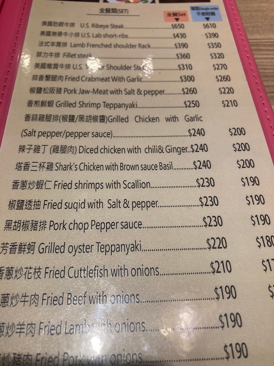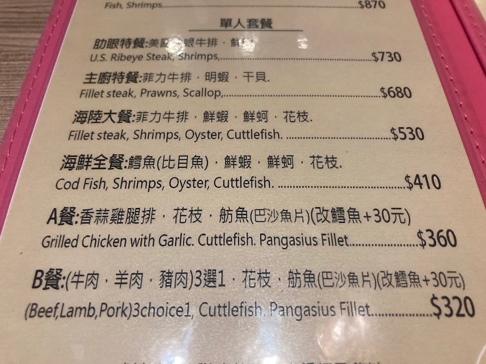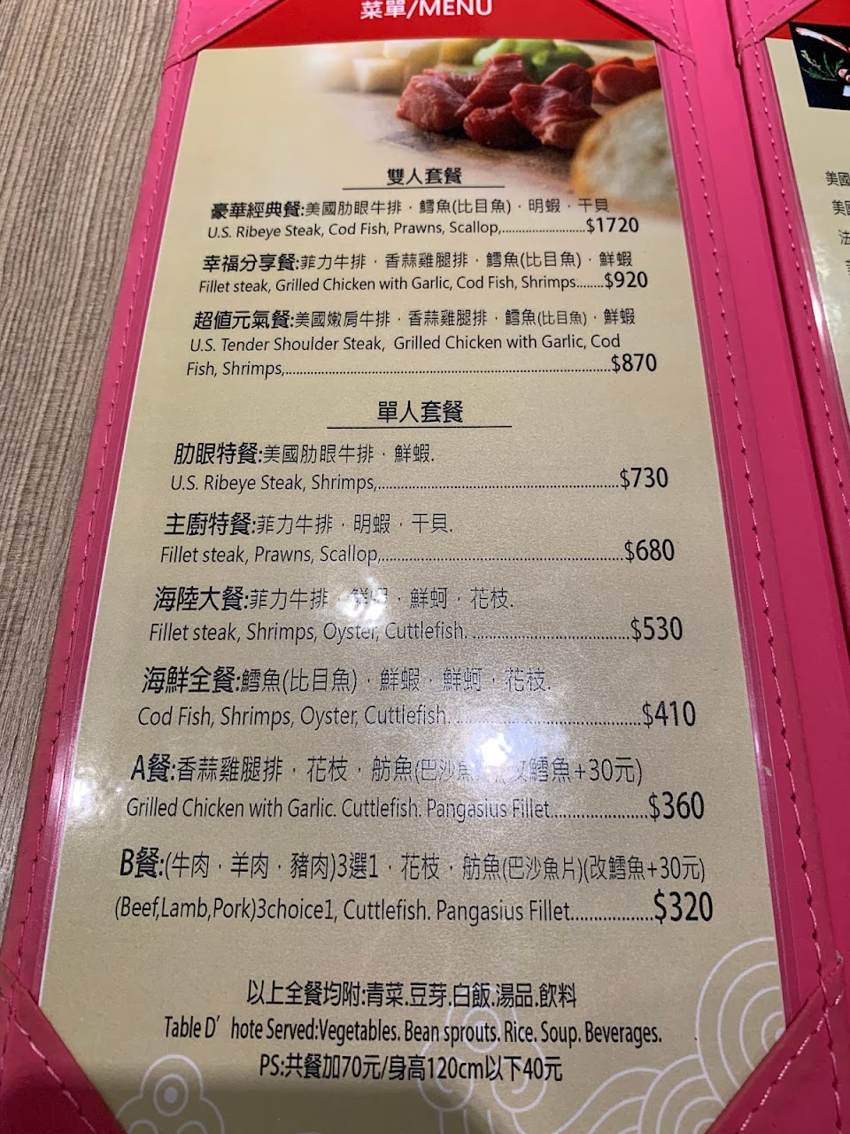 台式鐵板燒,毫無期待,但卻超乎期待,每道菜都比地下街精緻、好吃一些些。兩人一張小朋友就可以吃到海陸空,真的是非常滿足!絕對是您想不到答案的第二選擇!