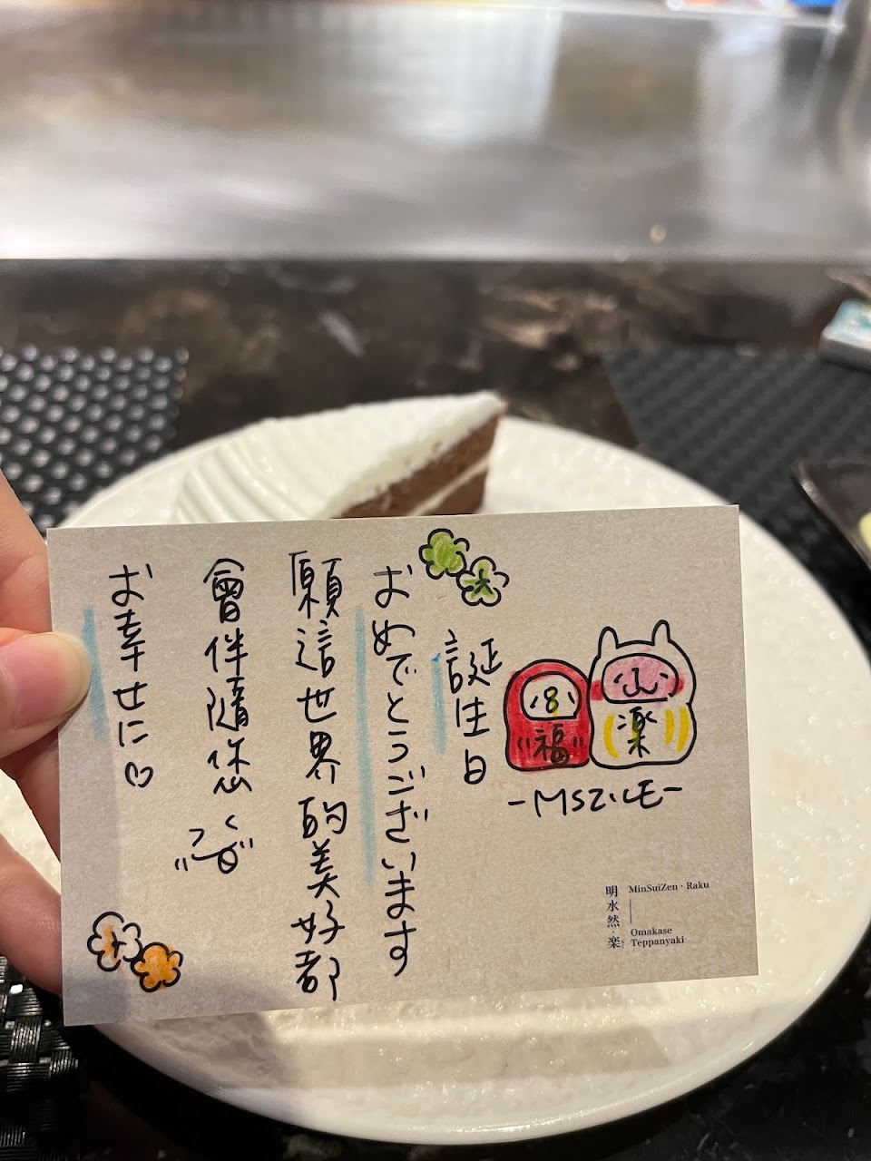 生日也有附上一個小蛋糕 盤子上還有彩繪畫圖 及手寫有溫度的卡片