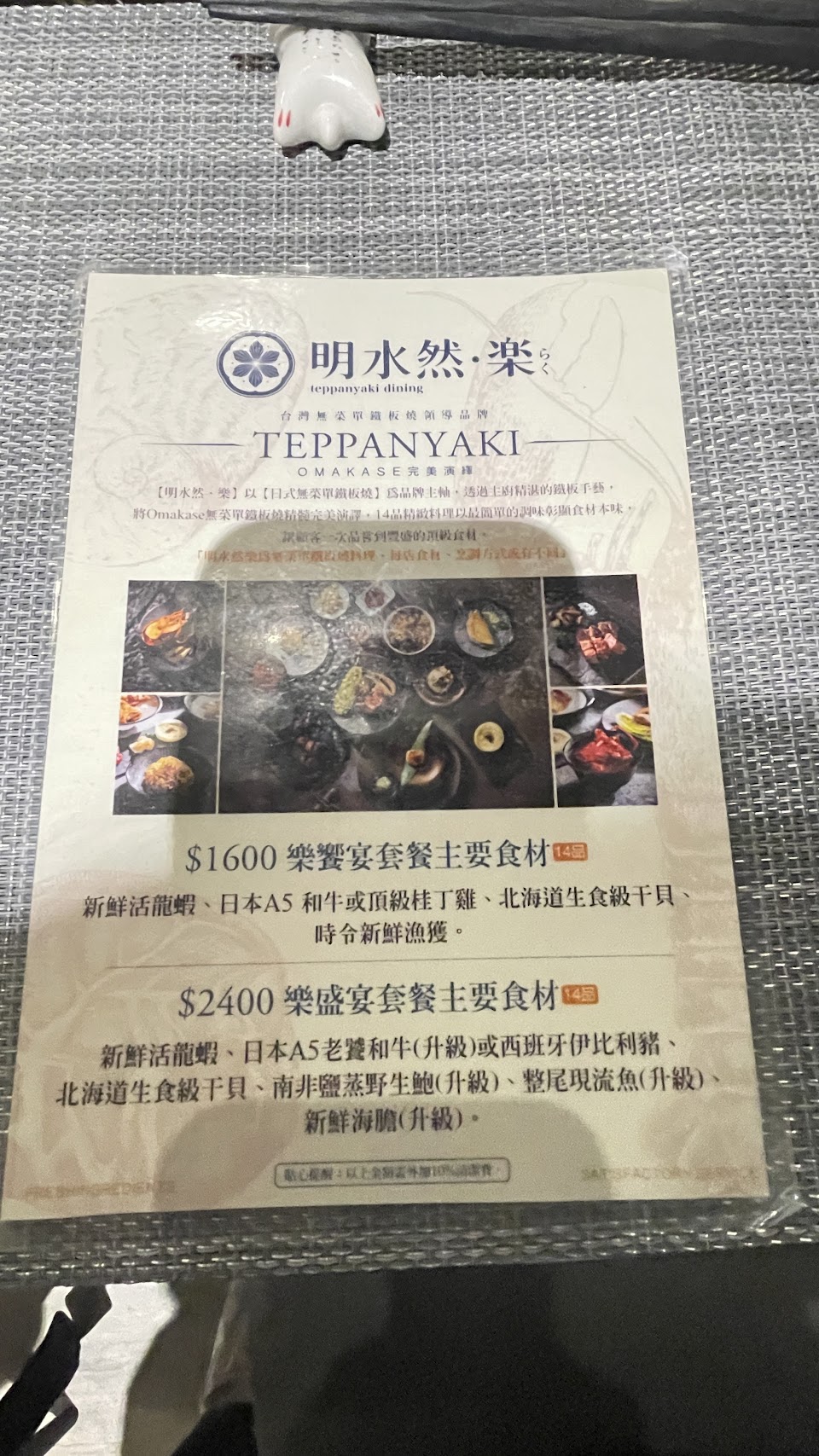 相較於其他差不多價位的鐵板燒,CP值高且食材新鮮。因場地受限,吃完主餐無法再坐到另一區好好品嚐甜點就要離場讓給下一輪的客人,感覺有點可惜。 餐點類型 午餐