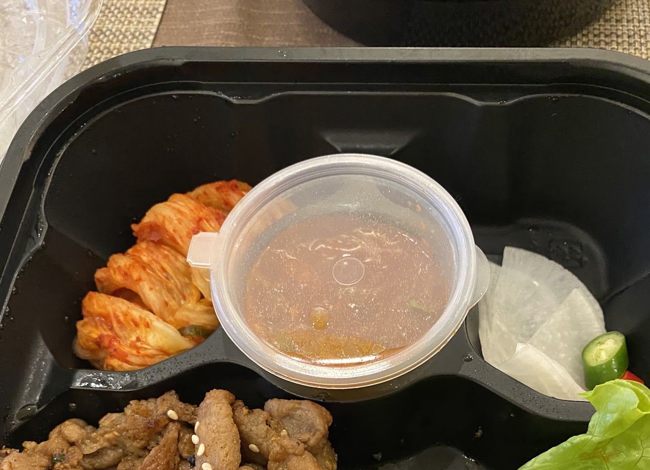 點了Ubereat 送到家後的餐點, 包裝精美乾淨完整, 海鮮煎餅料多厚實, 沾醬有點兒鹹, 若加點酸味會更好吃; 烤肉包生菜還送了三道小菜及生菜, 各自包裝得超完整, 韓式泡菜可能醃得不夠久, 還沒有入味, 烤肉味道很足, 包飯醬很道地, 但沒給白飯喔, 想搭配飯吃的人要記得單點白飯; 整體來說, 外送的餐點精確的包裝就先加分了, 以後想吃韓式會再點這一間