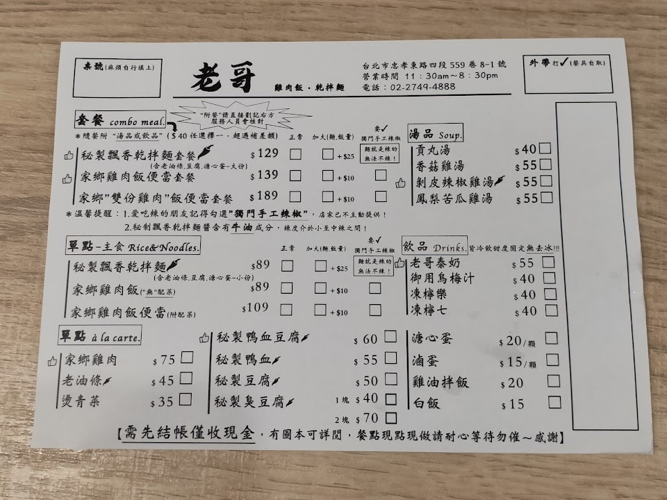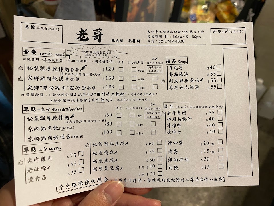 2024最新在地推薦餐廳的菜單_老哥(雞肉飯·乾拌麵)的菜單、圖片