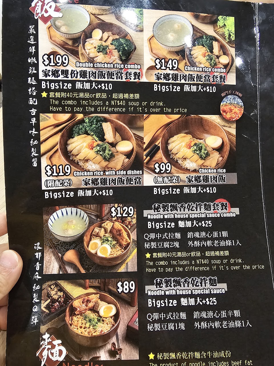 家鄉雙份雞肉飯便當 秘製飄香乾拌麵套餐 加大