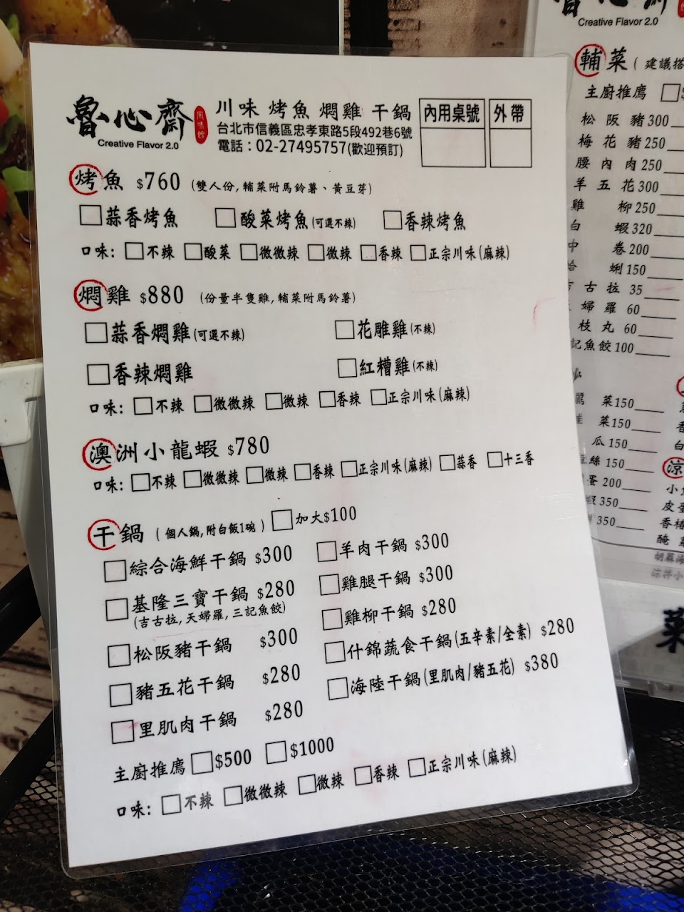 2024最新在地推薦餐廳的菜單_魯心齋風味館 川味 烤魚 燜雞 干鍋的菜單、圖片