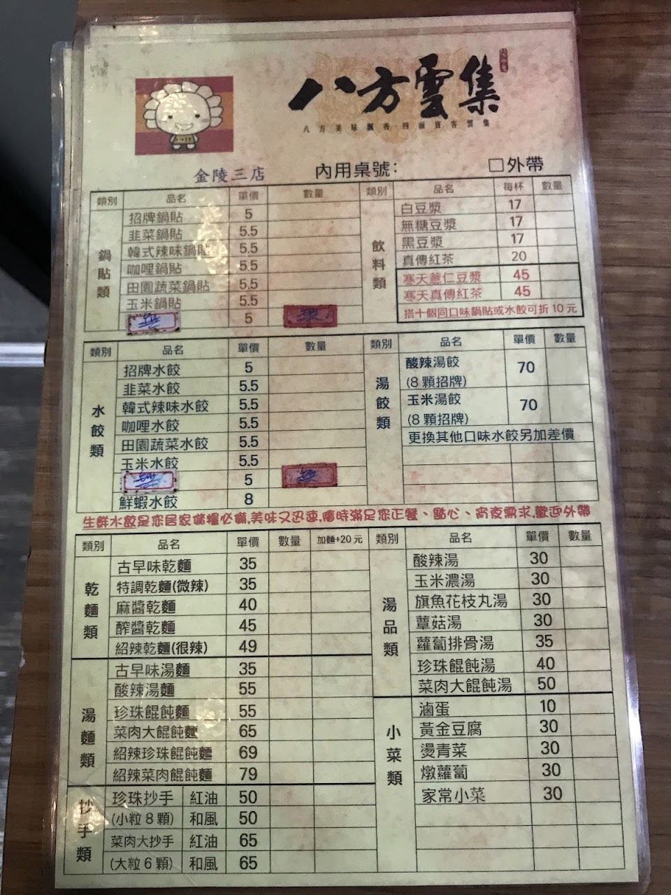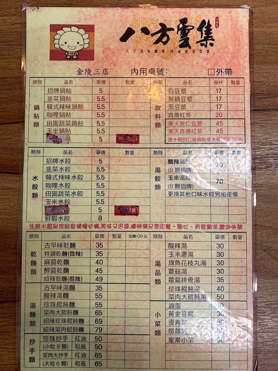 喜歡點八方的辣味鍋貼和酸辣湯餃
