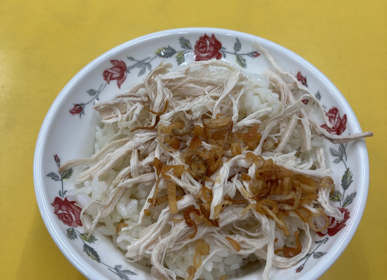 雞肉飯加少許雞絲和油蔥酥