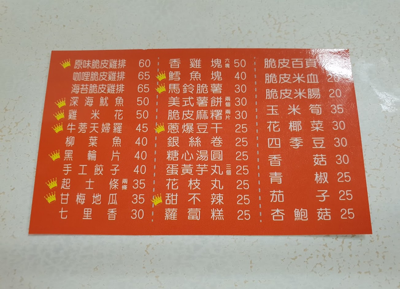 一直路過,最近才開始點餐(雞排、豆干、芋丸),目前還沒吃過不好吃的品項!!