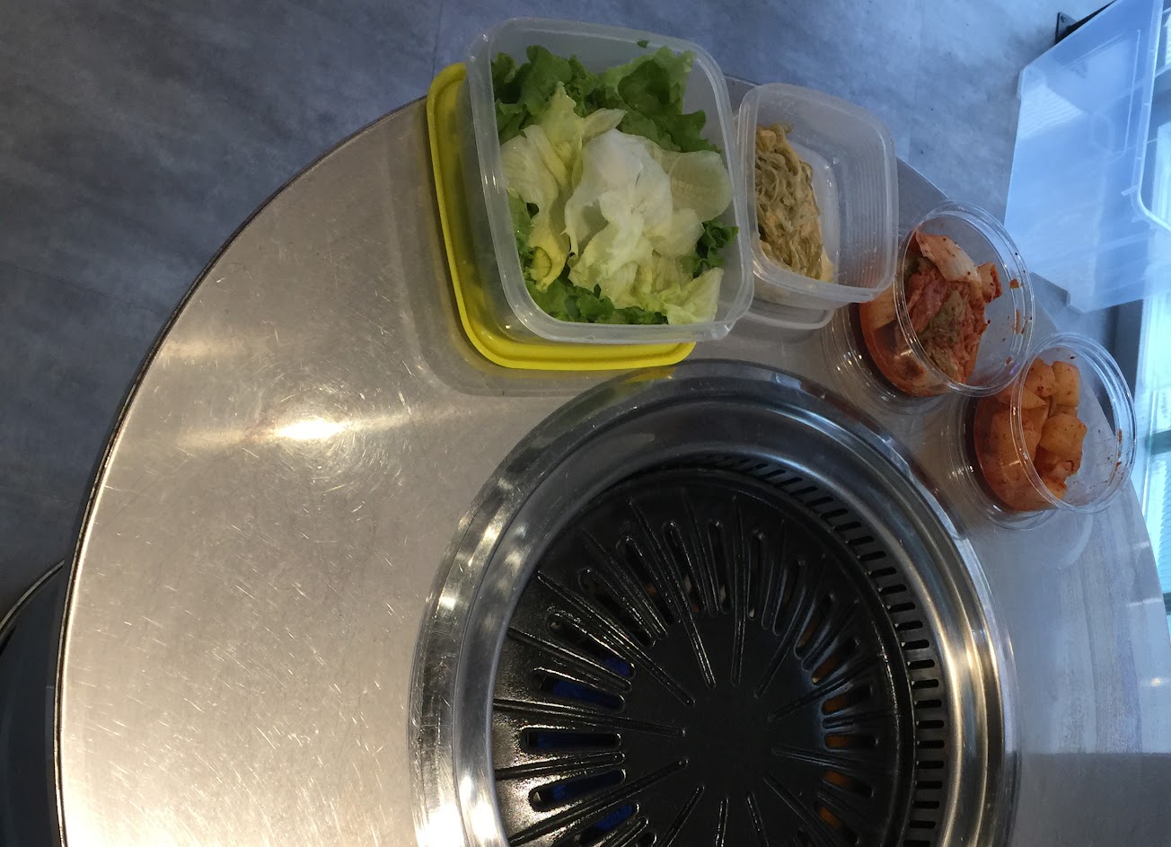我們下午5點去的,沒排到隊就進去了!一人低消一份肉390元,不收服務費,只有牛肉,好像有分兩個種類但我們沒聽清楚就個點一份哈哈哈~在新村站吃過以後念念不忘,覺得開來臺灣口味也很ok,而且韓國的飯和小菜要自己在便利商店買好,台灣直接店裡就有販賣,方便!不要看飯是微波的,在韓國也是這樣,可是不知道為什麼他們微波的飯超好吃啊!小菜醃蘿蔔超好吃??吃完想直接買醃蘿蔔回家配飯?服務人員都很好,一直過來巡,可能看我們太笨手笨腳,直接幫我們烤完了,我們只負責吃!覺得可以去體驗一下,雖然站著吃腳很痠? …