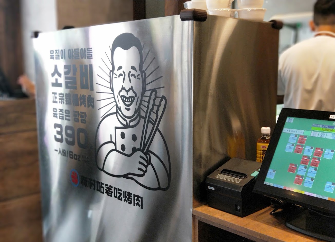 第一次路過就跑進來吃,有排隊系統可以預約,不用在這邊乾等。一進來可以先選白飯,小菜(前面這些需要先用現金結帳),之後就會帶位進去,肉有橫隔膜跟板腱可選擇,一份都是390元,旁邊有一些飲料可選擇,另外有一位Lee的店員服務很棒,幫我們烤的肉也很好吃!非常推薦來這邊吃!