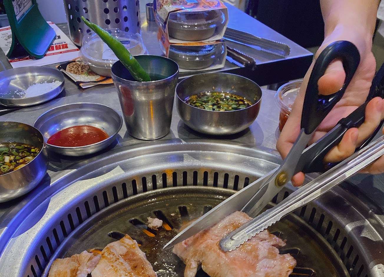 而且用餐環境更好,因為雖然是站著吃但是韓國??新材的店暗暗的、油煙味又重。台灣台北的門市很明亮、而且又通風吃完不會全身都是烤肉味。