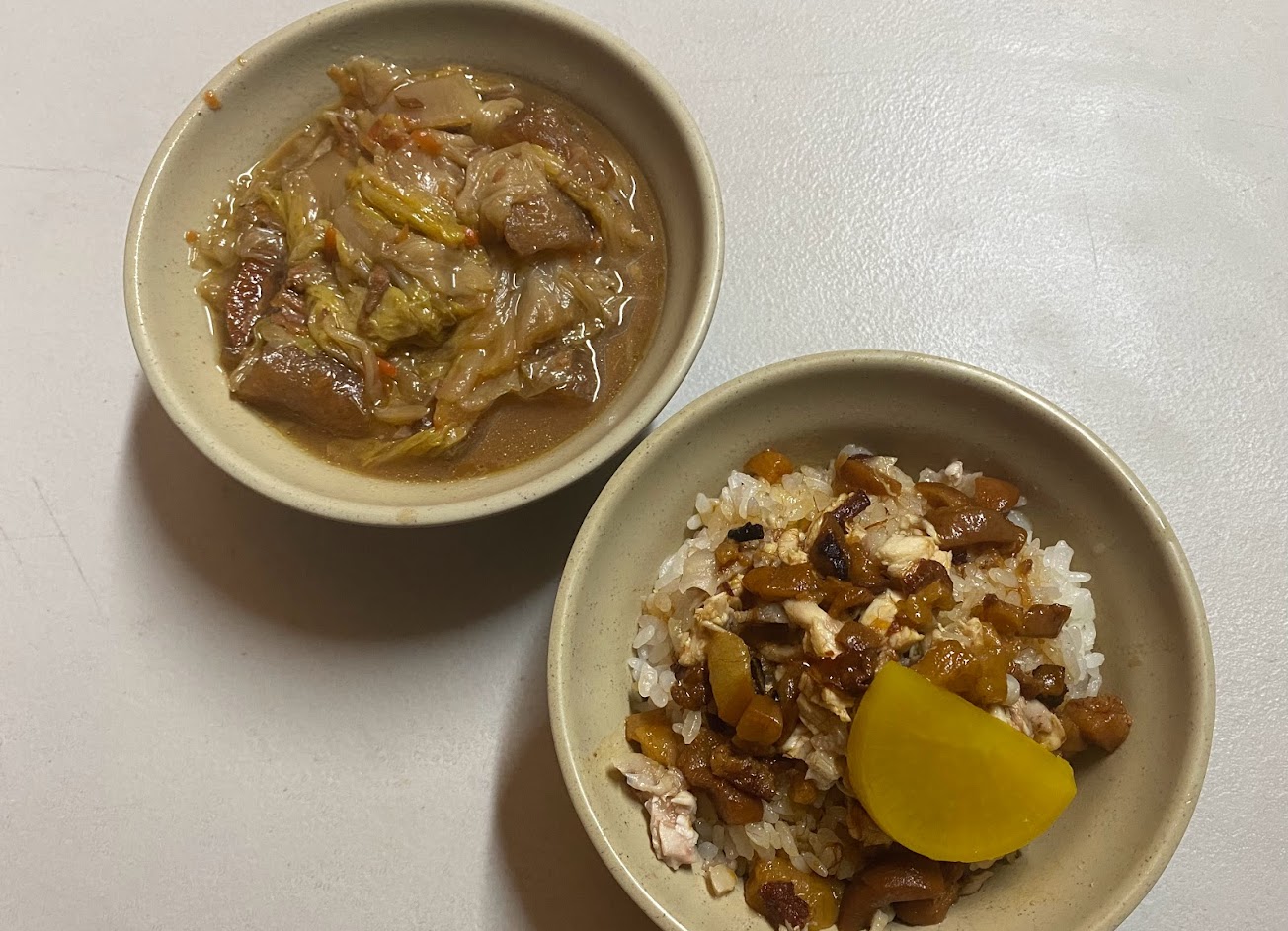 白菜滷熬煮入味搭飯正好,有如西方餐酒結合的Marriage境界。