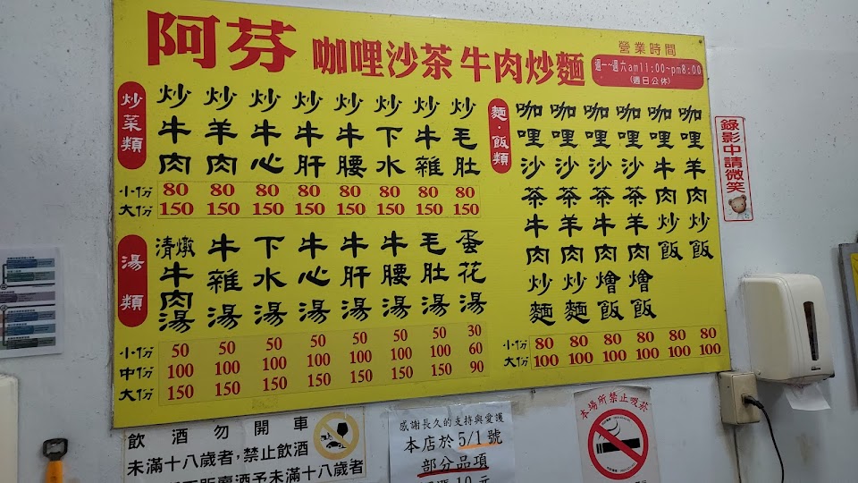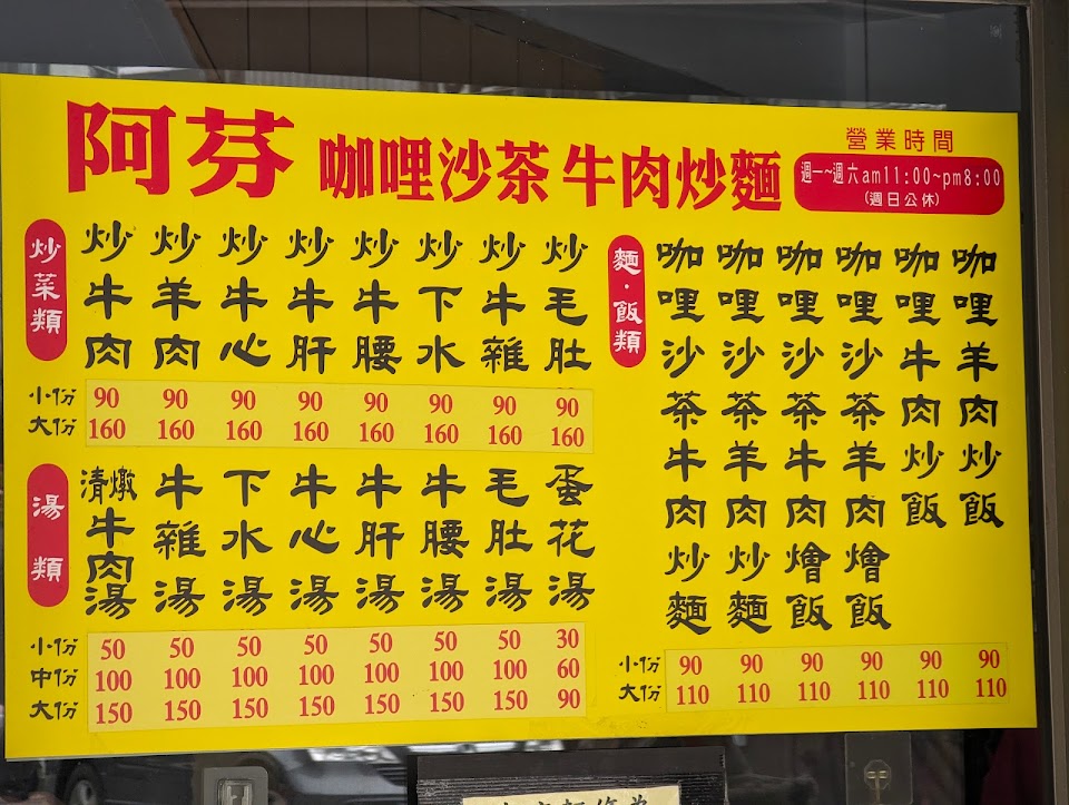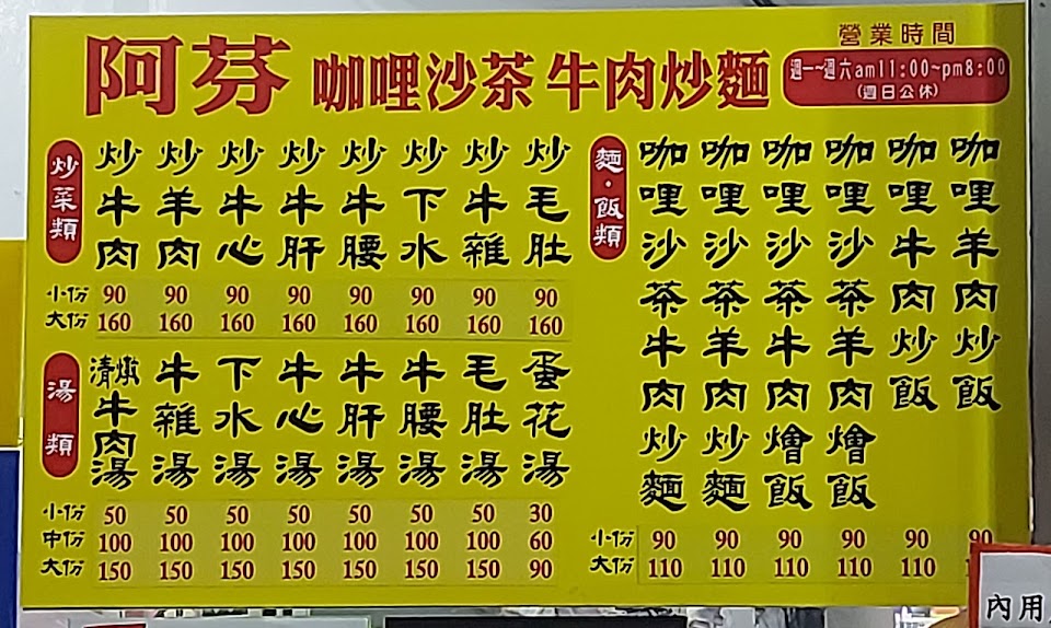 阿芬飯店吸引我,是因為ㄧ是她賣的是沙茶+咖哩+牛肉,沙茶+咖哩是什麼滋味沒吃過?二是她家的牛雜,也令我垂涎!