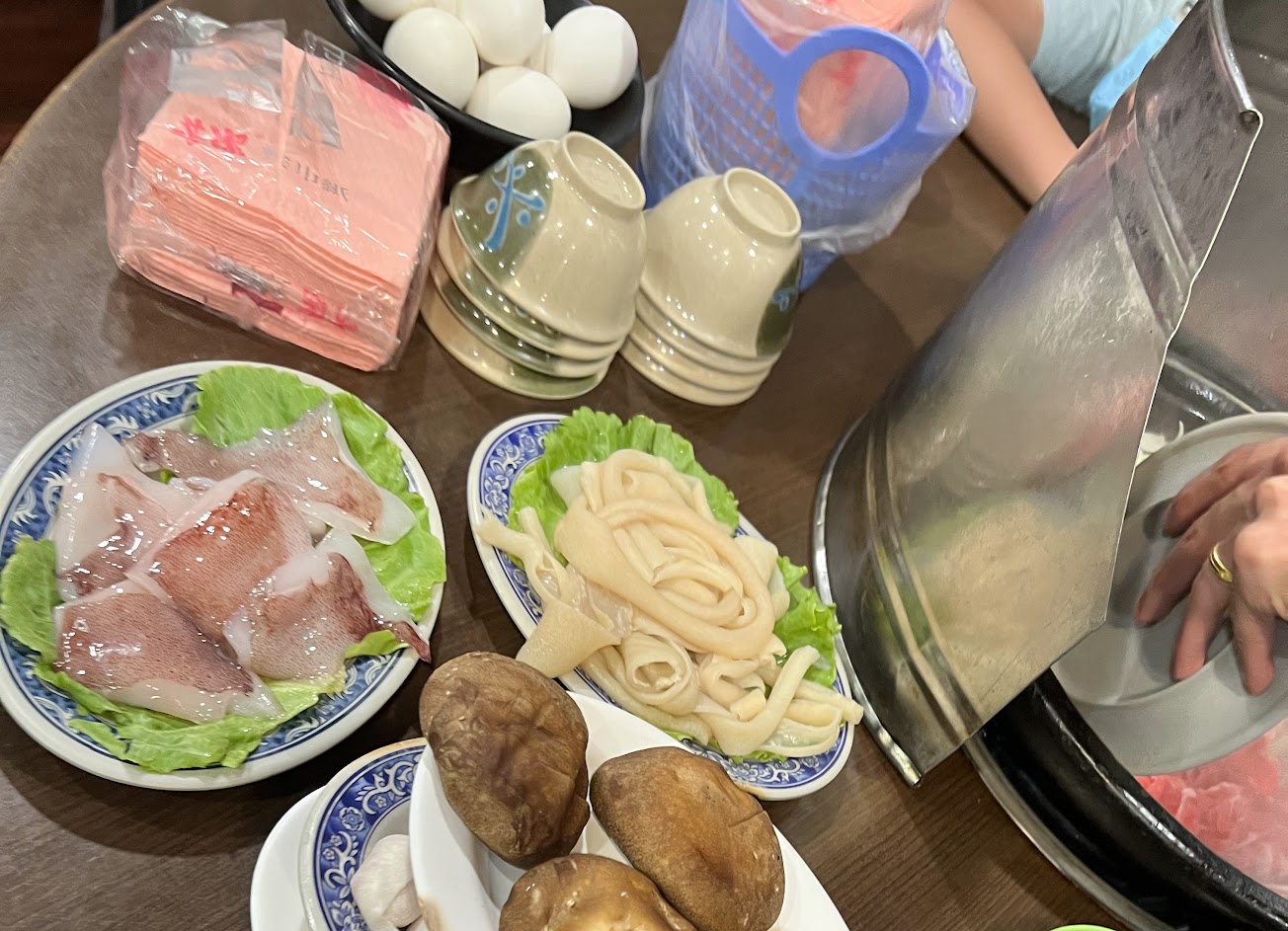 點了乾魷魚爆香。拿了魚餃、基隆的蛋腸(吃不太懂)、海鮮都很新鮮,湯頭偏甜。