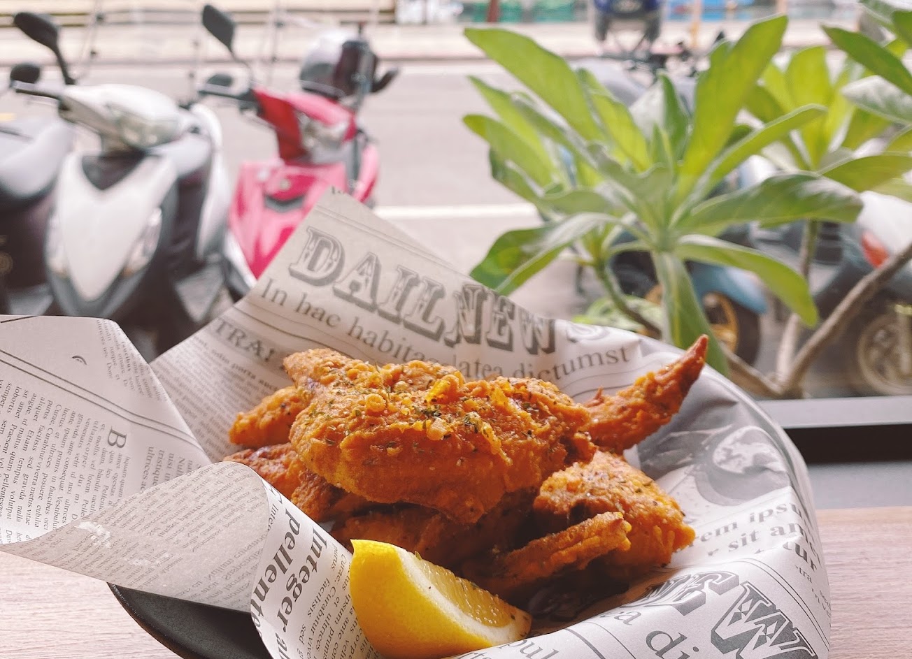 餐點美味,海鮮新鮮一定要,老闆的炸物都是一絕,義大利麵條老闆每天手作,超棒的,香酥多汁不油膩,超推炸薯條和炸雞翅,薯條沾醬好吃又解膩,雞翅份量大,似乎是咖喱味,很多汁,但座位很少,假日一定要先預約,老闆只有二個人一定要有耐心等候