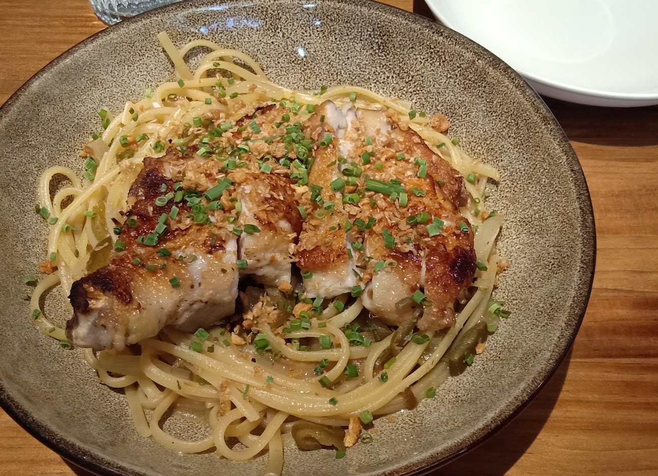 嫩煎雞腿剝皮辣椒細扁麵$300