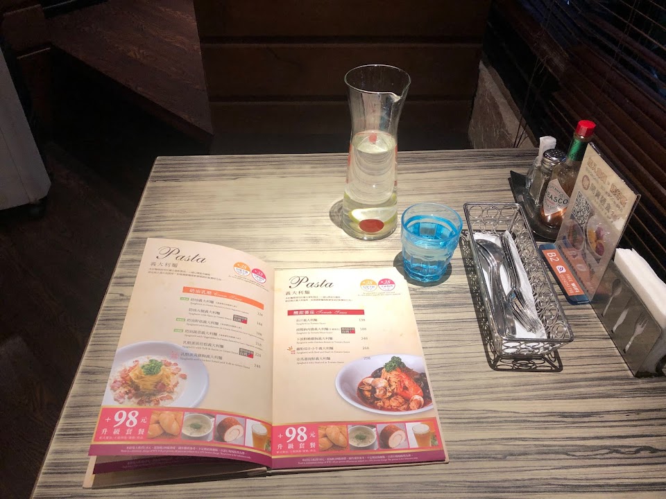主菜不貴,價錢約2~400,牛小排義大利麵味道還可以,而且本身份量就很大了,我又有加89元升級套餐,最後吃得非常飽,可惜的是甜點烤布蕾上面的焦糖很少又很軟,跟平常吃的差很多,是我吃過烤布蕾中最沒存在感的焦糖。