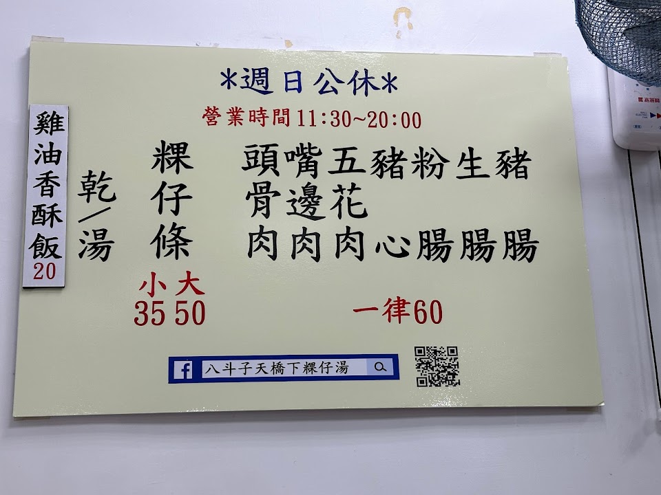 八斗子天橋下粿仔湯不錯吃,再配上粉腸、豬腸、生腸、嘴邊肉,淋上蒜蓉醬油膏真的是好吃。