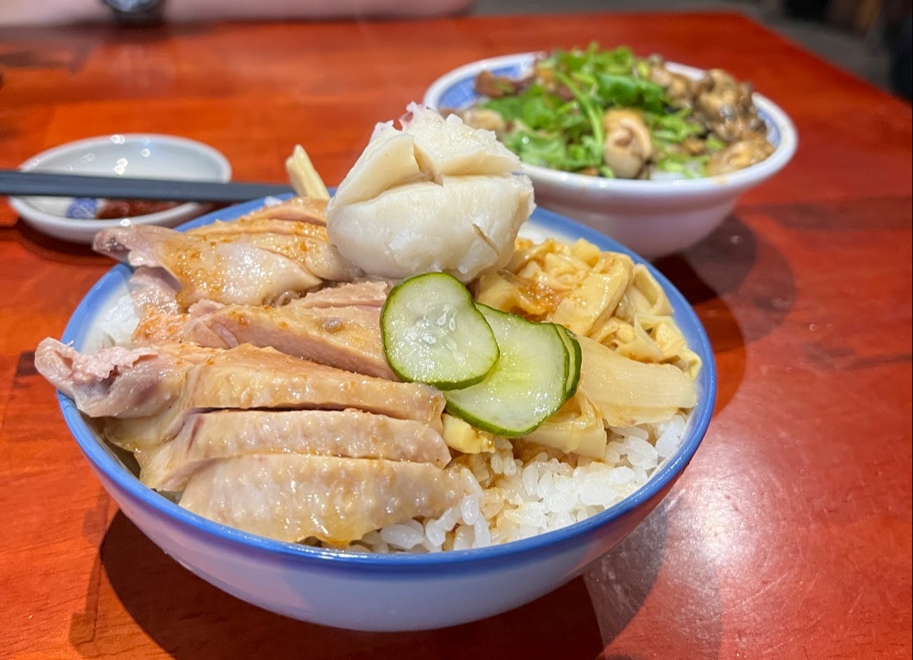 台式切仔麵,用的卻是類似日本拉麵的湯頭,完全不會牛頭不對馬嘴。滷肉飯甜鹹比例蠻優,趁飯熱能飄出足夠的香氣。雞肉半脆半嫩,不腥,實屬佳作。