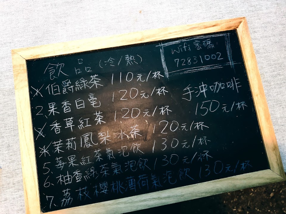 飲品選擇不多,大多都是茶類,咖啡只有手沖咖啡一種。甜點每天提供的都不一樣,想知道有什麼口味可以先看粉專,太晚去可能也會售完。