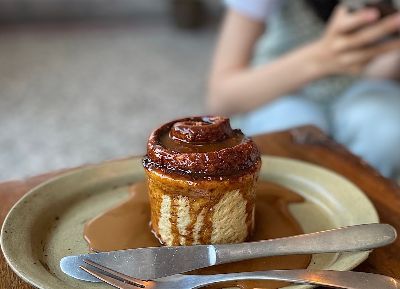裝潢以舒服的原木色調為主,飲品跟甜食都很棒,我們點了湯種肉桂捲、司康跟布丁都超~~好吃
