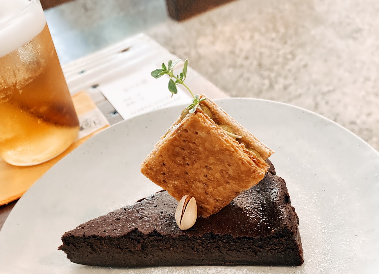 甜點選了我們最愛巧克力系列 連友人都讚賞?? 上面的開心果千層酥也超級好吃?超級開心果