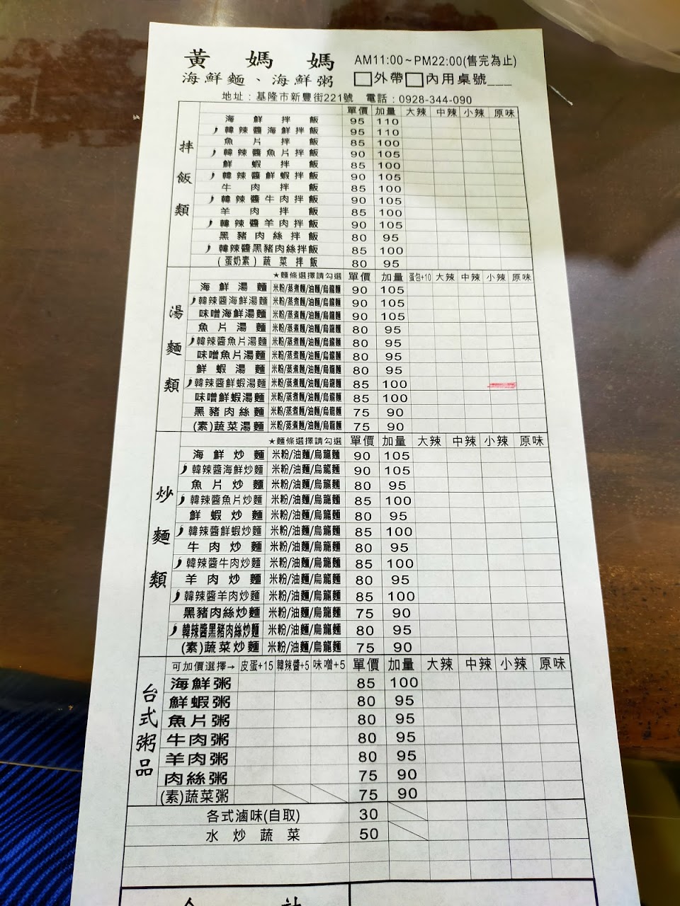 2024最新在地推薦餐廳的菜單_黃媽媽海鮮麵海鮮粥(傳承十年的菜單、圖片