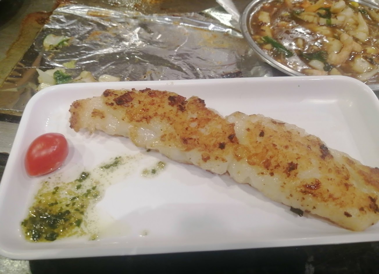 招待的牛肉捲太鹹了。建議防疫期間,顧客的桌子間要設隔板,否則位子靠太近。我點的是冰島鱈魚,味道普普。